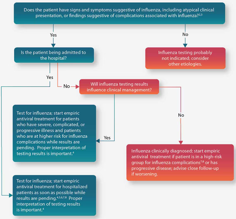 39. CDC. Guide for considering influenza testing when influenza viruses are circulating in the community. Updated November 24, 2023. https://www.cdc.gov/flu/hcp/testing-methods/consider-influenza-testing.html