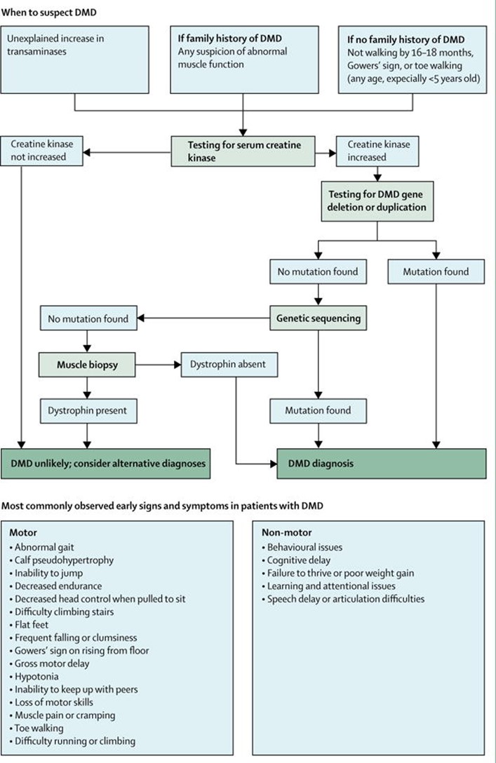 58. Aartsma-Rus A, Hegde M, Ben-Omran T, et al. Evidence-Based Consensus and Systematic Review on Reducing the Time to Diagnosis of Duchenne Muscular Dystrophy. J Pediatr. Jan 2019;204:305-313.e14. doi:10.1016/j.jpeds.2018.10.043
